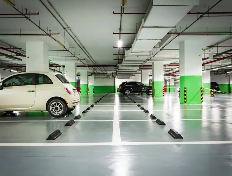 Pintado de Garajes y Naves Industriales: Marcado vial, señalización horizontal y pintura de alta resistencia para estructuras verticales que cumplen estrictas normativas de seguridad, higiene e iluminación industrial.